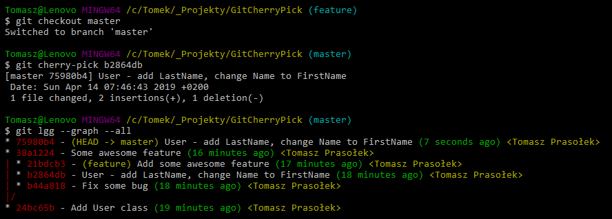 Jednak da się to zrobić w sposób szybszy i dużo łatwiejszy. Jak? Polecenie git cherry-pick nam pomoże.